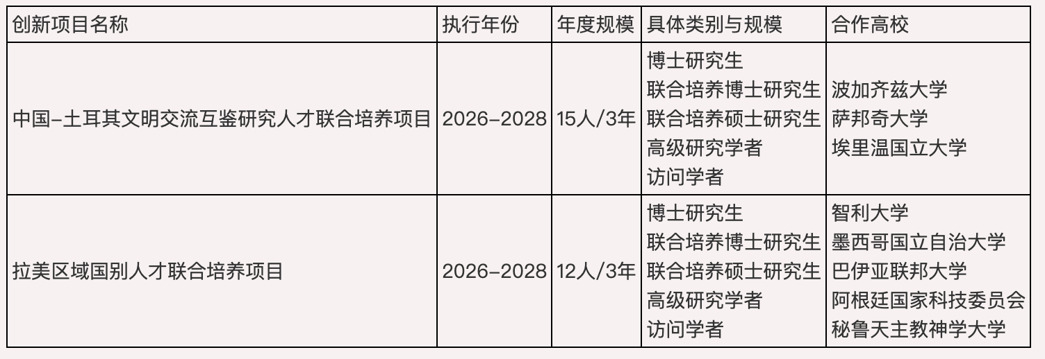 本项目执行期为2026-2028年,选派类别涵盖高级研究学者、访问学者、博士研究生、联合培养博士研究生、联合培养硕士研究生等。未来三年,两个项目可选派27名师生赴土耳其、亚美尼亚、 巴西、阿根廷、秘鲁、智利与墨西哥等高校学习交流。